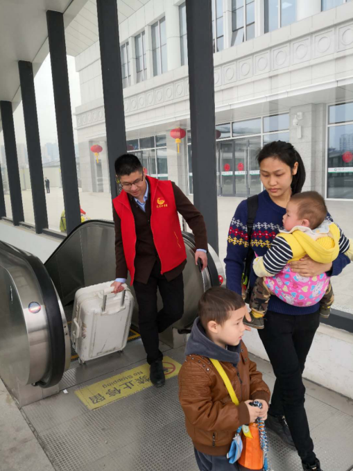 在火車站服務(wù)最需要幫助的有三種人:一種是殘疾人,一種是老年人,另外一種就是一手抱著小孩一手提著行李的旅客因新建火車站剛剛啟用,“請(qǐng)問(wèn)進(jìn)站口在哪兒?當(dāng)一位拿著大包小包還帶著孩子的旅客問(wèn)到。“在這邊,我來(lái)幫你。”志愿者一邊指著路一邊接過(guò)旅客手中的包,一路將她送至進(jìn)站口