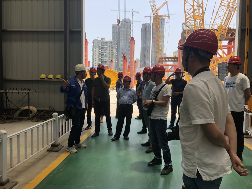 隨后,考察人員前往第二站中鐵大橋局七公司承建的江漢七橋項目,該項目負(fù)責(zé)人帶領(lǐng)考察人員觀看了江漢七橋的動態(tài)視頻,隨后一行人深入施工現(xiàn)場,參觀了該項目的鋼筋加工車間、施工工藝流程及安全文明施工標(biāo)準(zhǔn)化等,并進(jìn)行了深入交流探討。