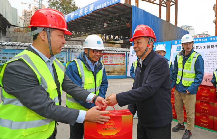 1月7日上午8時,市領(lǐng)導許維澤、陳廈生、黃慶輝來到龍巖大橋項目現(xiàn)場,了解建設情況,慰問一線工人。許書記首先詳細了解項目建設進展情況,并對龍巖大橋主塔順利封頂表示祝賀。同時,許書記為一線工人送上2020年“兩節(jié)”送溫暖慰問金3萬元和節(jié)日慰問品。